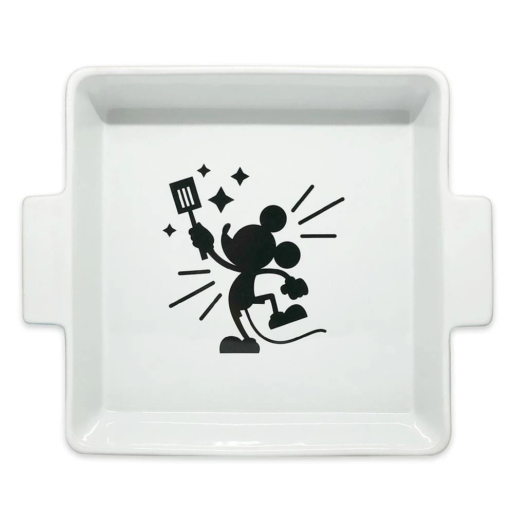 Cook up something swell with this ceramic baking dish from the Disney Parks Mousewares Collection. The sides are covered in a pattern inspired by Mickey, Minnie, Goofy, Donald, Pluto, and kitchen essentials while Mickey’s silhouette is inside.