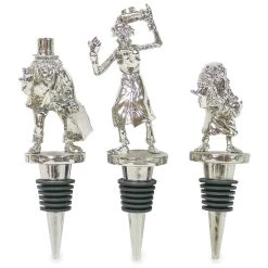 Fans of the wayfaring apparitions from The Haunted Mansion will give this Hitchhiking Ghosts Bottle Stopper Set three thumbs up. Crafted in metal with a chrome finish, the detailed figural sculpts of Ezra, Phineas, and Gus perch atop the tapered stoppers that feature a silicone gasket to keep your bottles air tight.