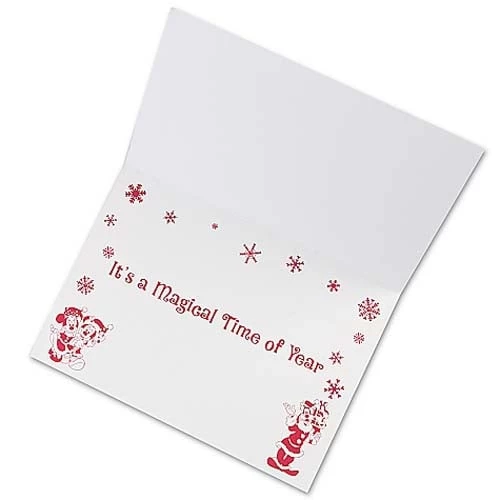 Let your loved ones join in the holiday spirit just like their favorite Disney characters with these sparkling Santa Mickey and Friends Greeting Cards! Open the card to find Mickey, Minnie, and Goofy reminding you that ”It’s a Magical Time of Year”!