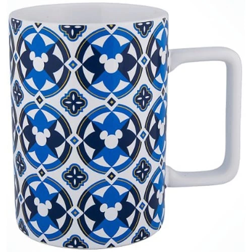 - Geometric mosaic patterned mug with Mickey icons