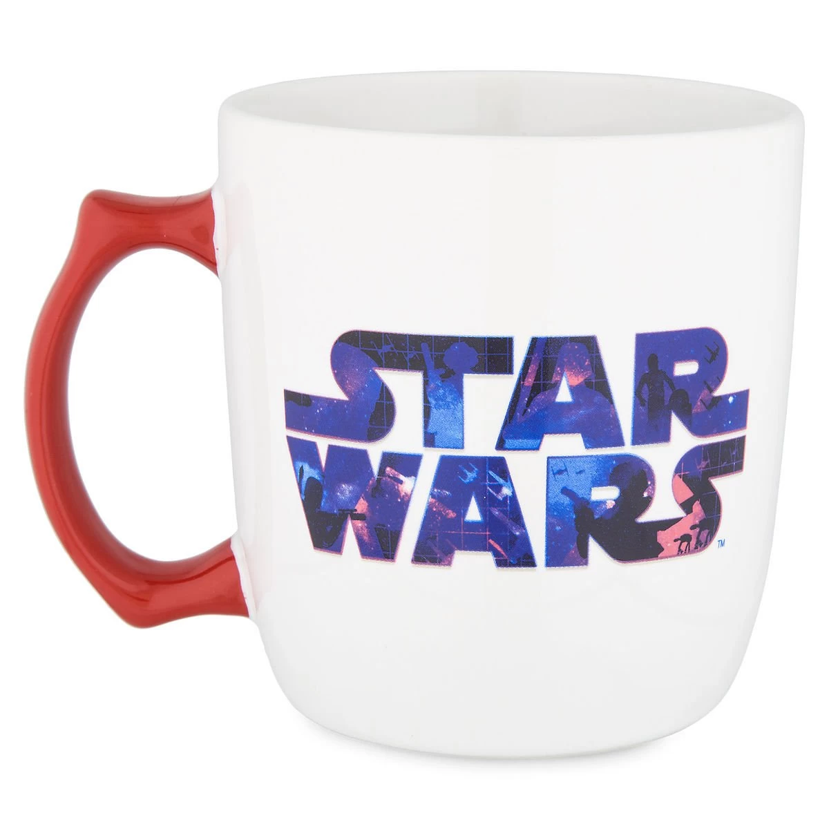 Face the day with dreams of intergalactic battle using this mug featuring an X-wing Starfighter. The Star Wars movie logo on the other side is designed with a space theme.