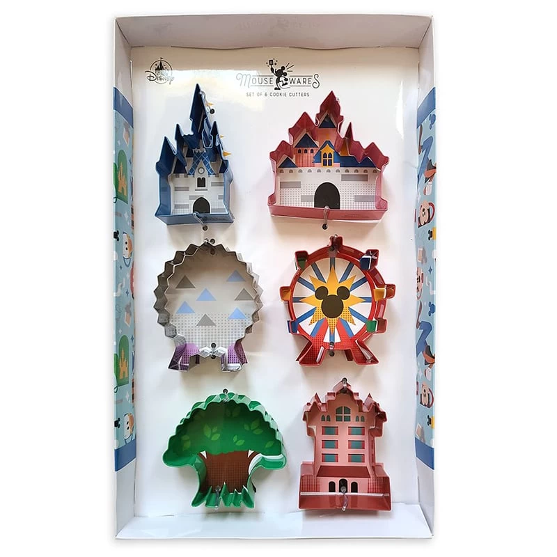 When you’re missing Disney Parks, make your own delicious day at Disney using this set of six stainless steel cookie cutters. Part of the Disney Parks Mousewares Collection, each cutter comes in the shape of an iconic location.