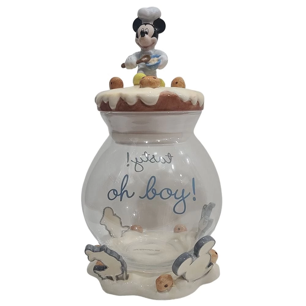 - Jar is clear glass with “tasty!” on one side and “oh boy!” on the other