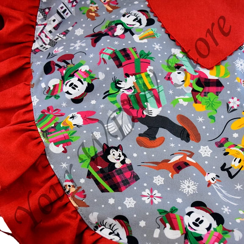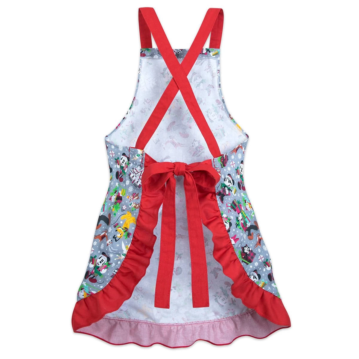 Delight your holiday party guests by serving up delicious homemade treats in this fancy ruffled apron with wintry Disney character print, direct from the Disney Parks.