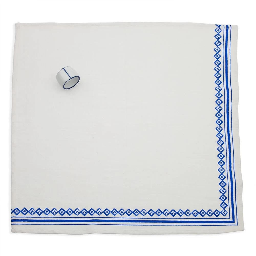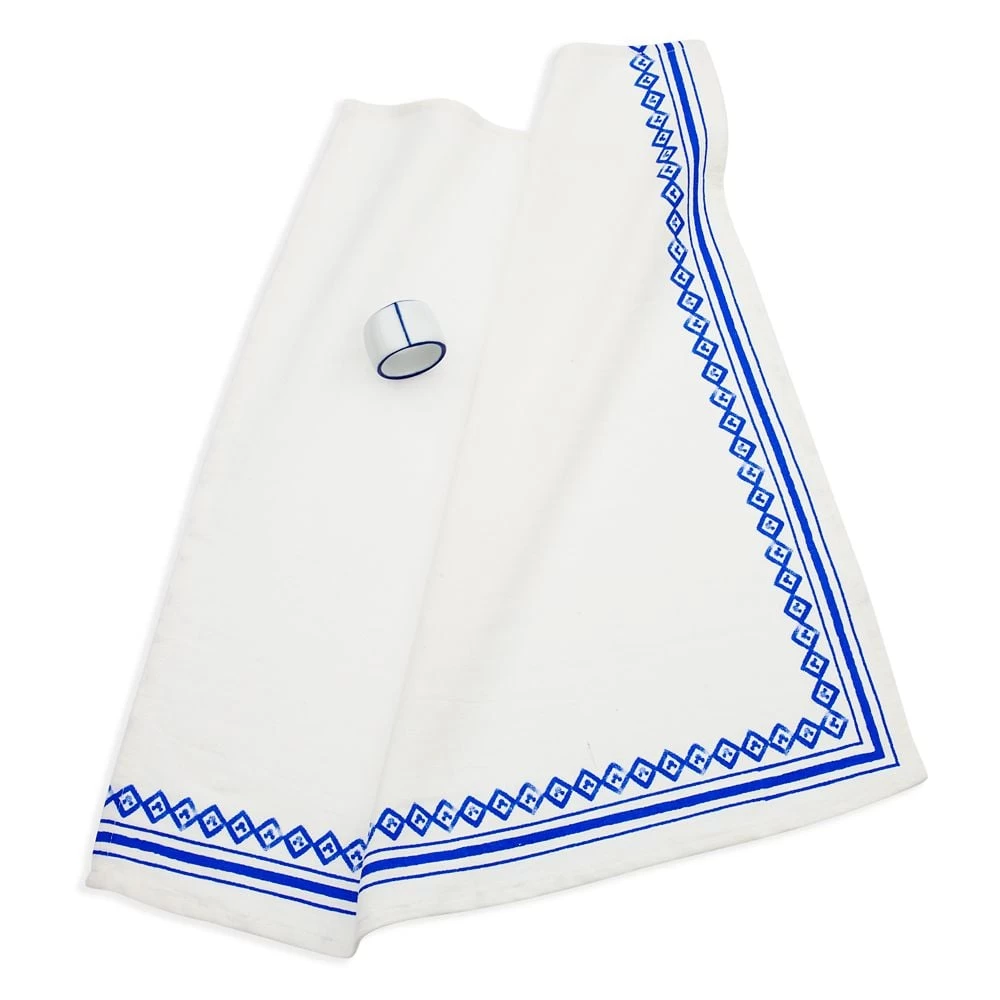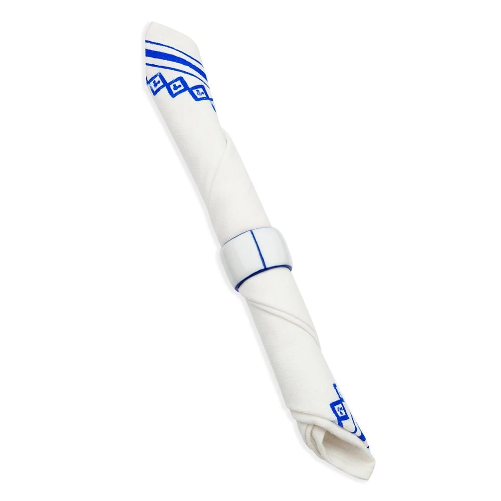 - Includes coordinating white ceramic napkin ring with blue detailing