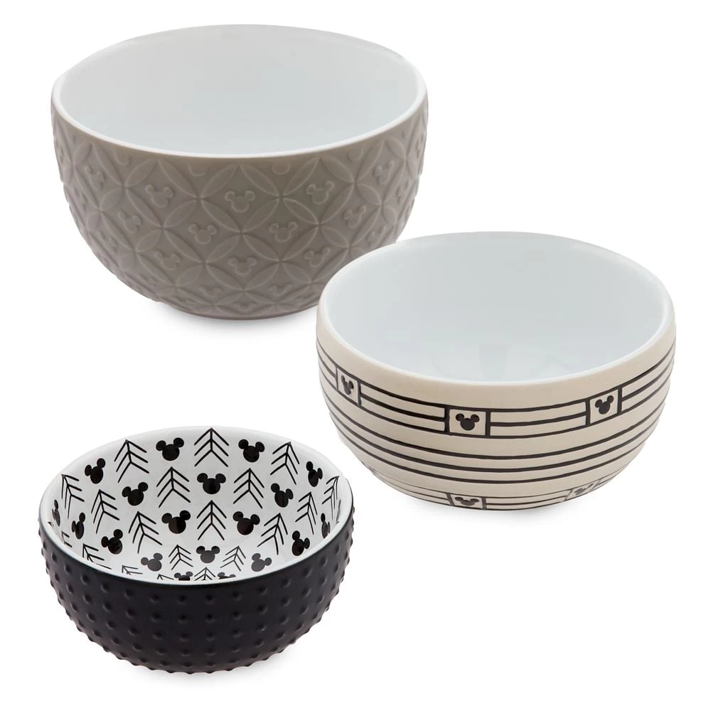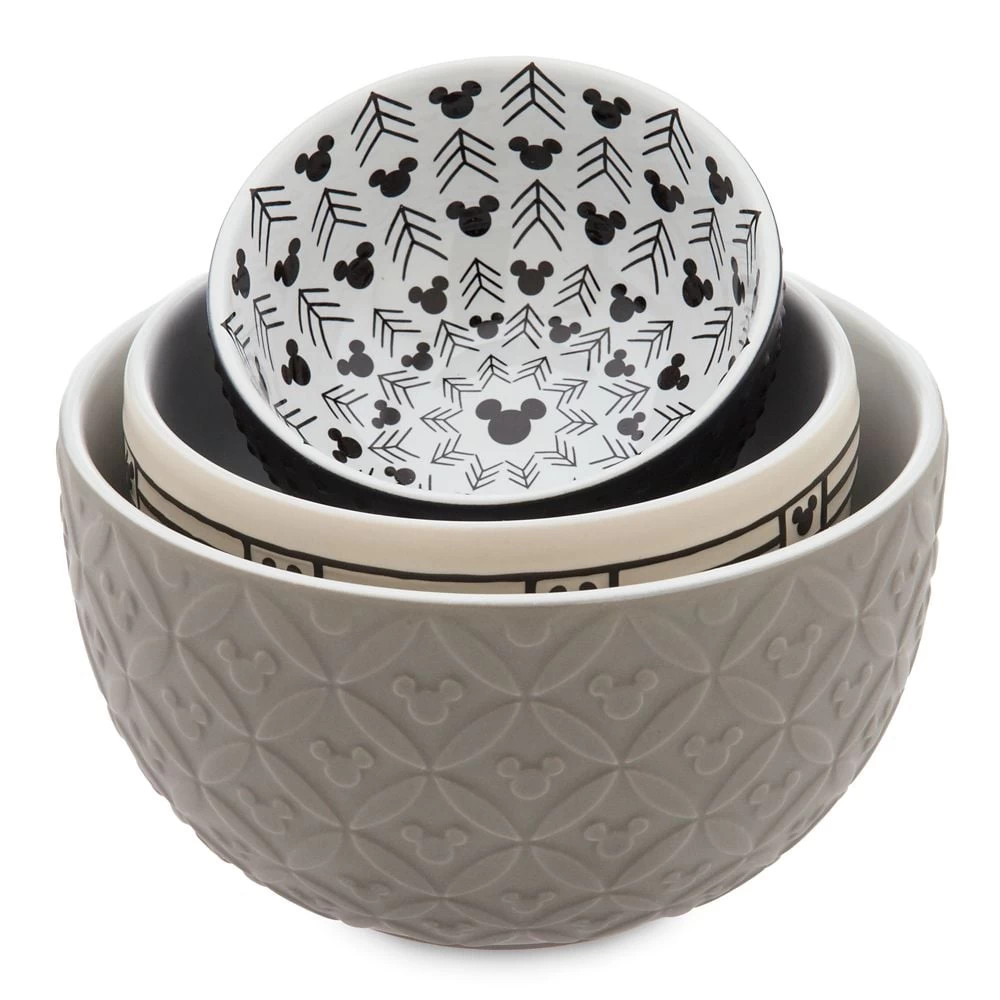 Add an elegant accent to your kitchen decor with these ceramic nested bowls in muted tones from the Disney Homestead Collection. Each bowl features a different pattern and color, and all are perfect for cooking prep or snacks!