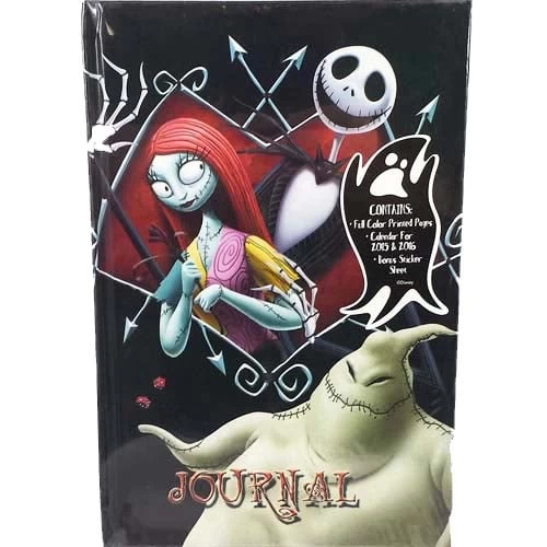 Check out this awesome Nightmare Before Christmas Keepsake Journal! Featuring Jack Skellington, Ragdoll Sally, and Oogie Boogie. This hard cover book is amazing! Comes with full color printed pages, a built in calendar, and a sticker sheet!