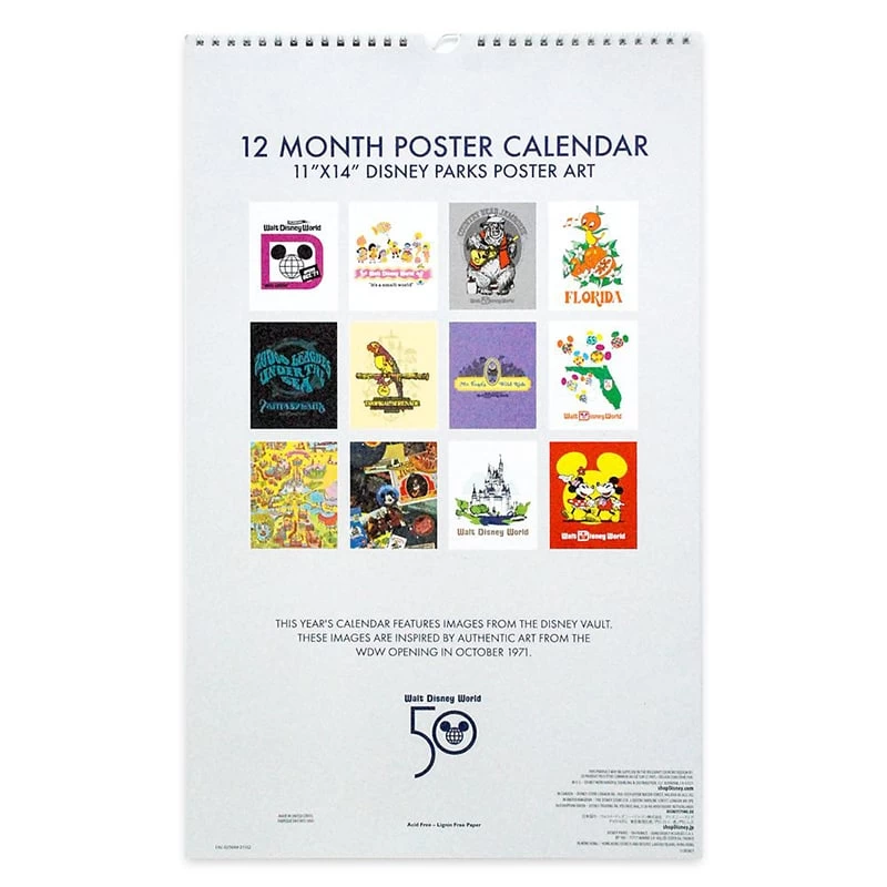 - This year’s calendar features images from the Disney Vault inspired by authentic art from Walt Disney World’s opening on October 1, 1971