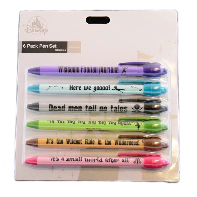 This is a great set of 6 black ink pens with some of your favorite Disney catch phrases,sure to spark those great memories