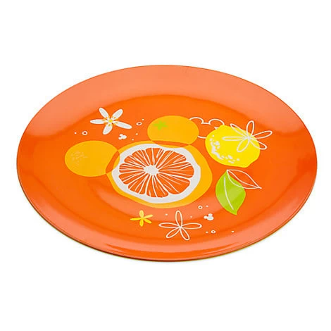 Add some zest to any occasion with this Mickey Mouse Citrus Serving Tray. Oranges form the Mickey icon that decorates this large melamine dish. Part of the Citrus Collection, it’s a deliciously colorful addition to your table.