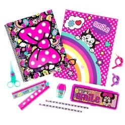Our Minnie Mouse Stationery Supply Kit offers a sweet assortment of creative and school essentials to inspire every imagination, with notebook, pencils, accessories and a cute case.