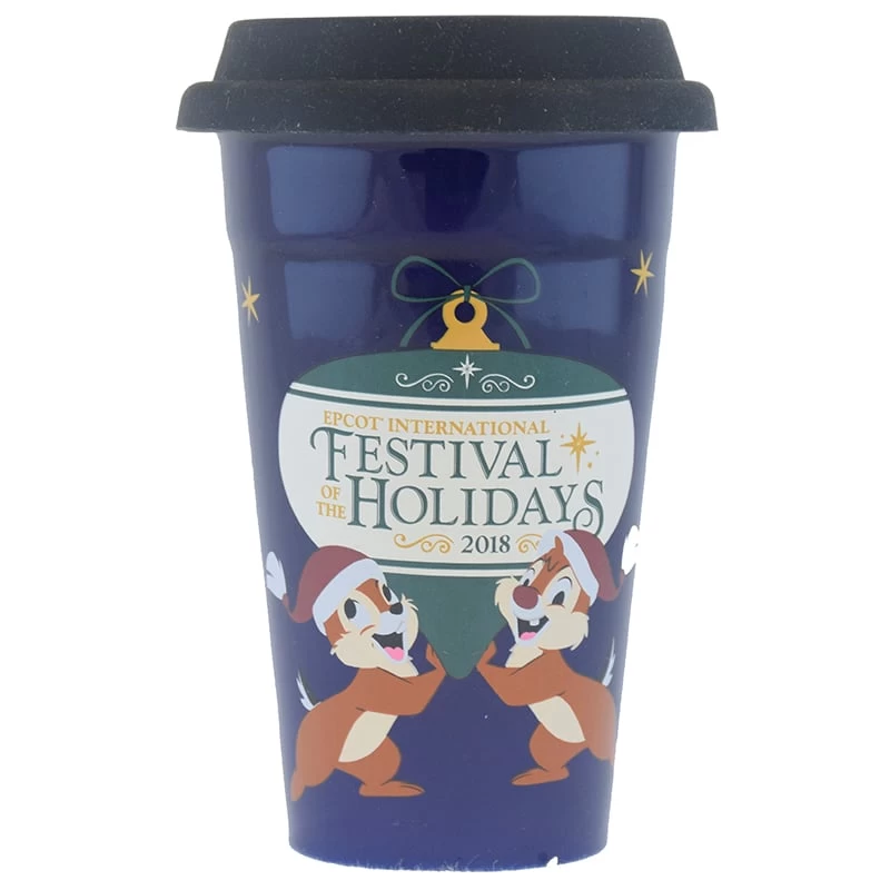 This limited release ceramic travel mug will commemorate the Festival of the Holidays 2018. It features Chip and Dale and the Festival Of The Holidays logo.