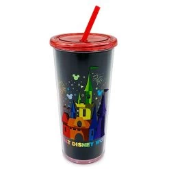 Refresh yourself with our colorfully fun travel tumbler featuring Cinderella Castle-inspired art, metallic fireworks and lettering, plus a handy straw. It’s perfect for enjoying your day in bright style.