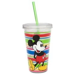 Refresh your summer fun while sipping from Mickey’s travel tumbler with straw. The lid twists on tight for on-the-go thirst quenching. Dual-layer design looks just like a fast food drink cup but made from heavy-duty reusable acrylic.