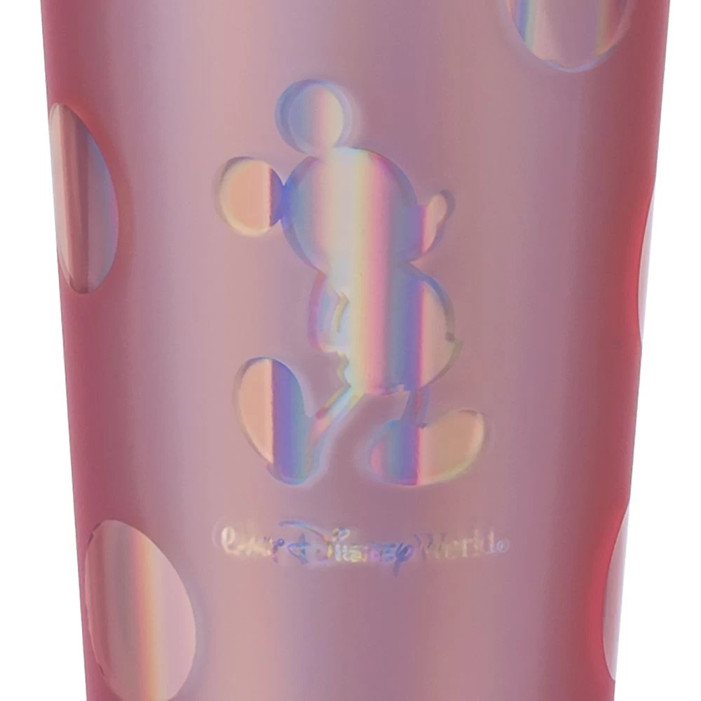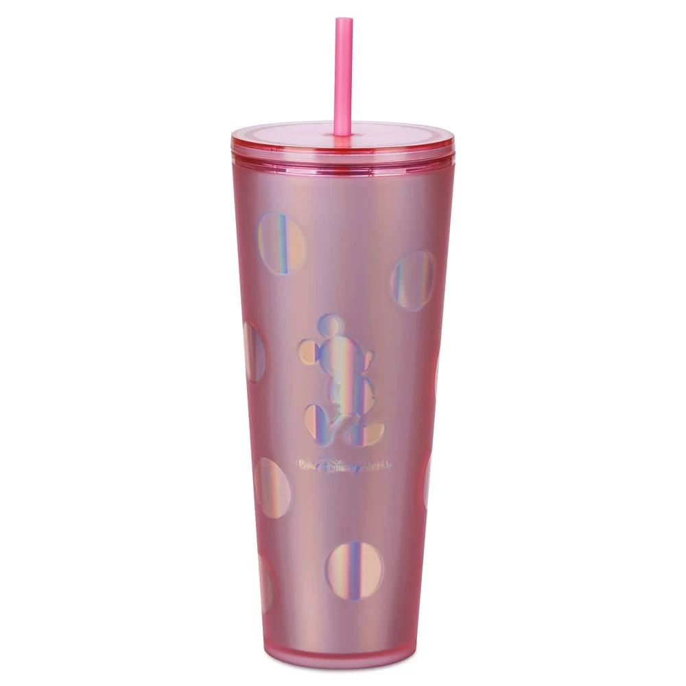 Drink-in happy memories of your trips to Walt Disney World with this commemorative tumbler and straw. Featuring an allover iridescent polka dot pattern and classic Mickey Mouse silhouette, this pink cup is perfect for your next park day or Disney vacation.