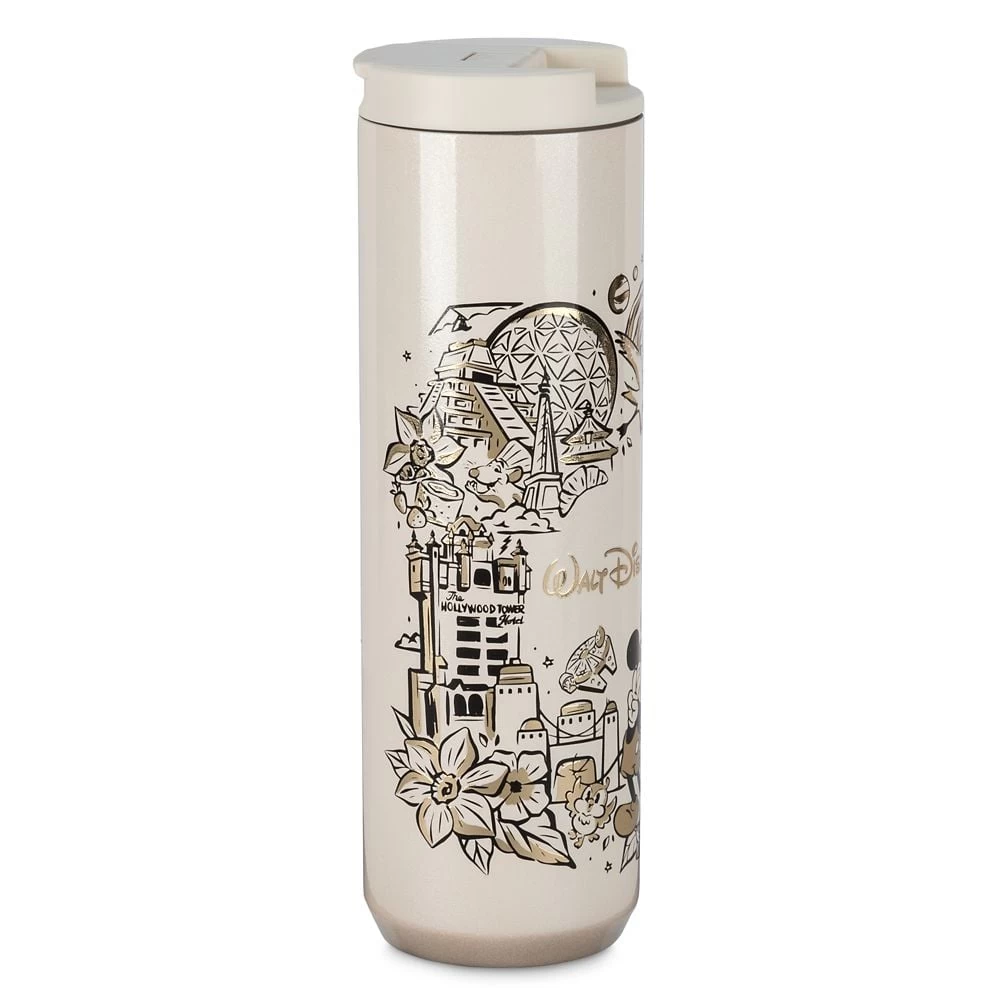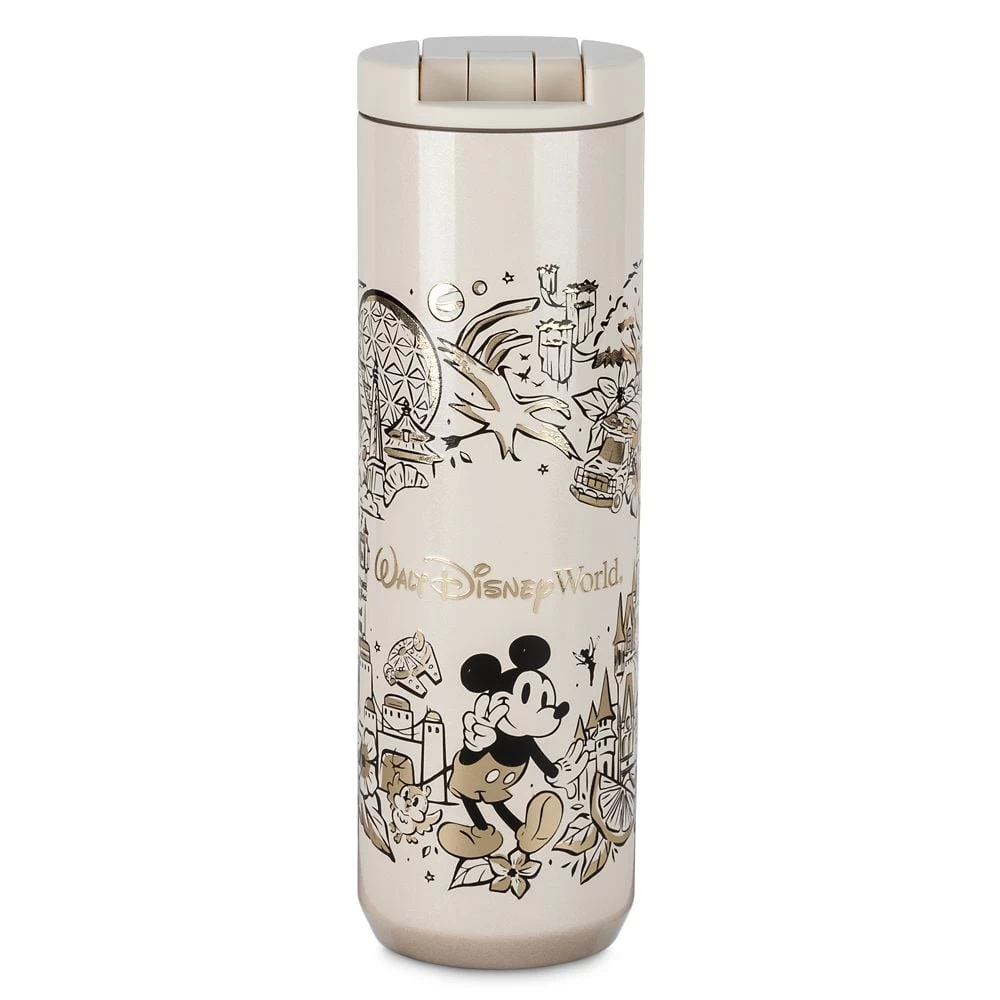 Drink in happy memories of your trips to The Most Magical Place on Earth with this souvenir Walt Disney World water bottle. The stainless steel body features Mickey among the park’s many popular attractions and landmarks on one side, while the other side features the Starbucks® logo. With its flip-up opening, it’s perfect for your next park day.